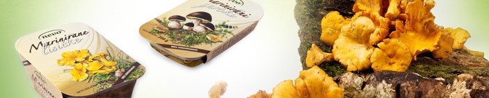 gozdne gobe lisičke, deviško oljčno olje, vinski kis, začimbe